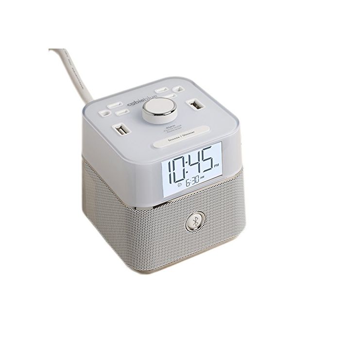 CubieBlue 2.0 Bluetooth 2.0 Single Day Alarm Clock, 2 USB (a+c) & 2 Outlets, White