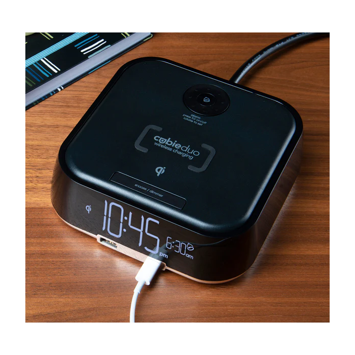 The newly updated CubieDuo 2.0 wireless charger is a unique charging hotel alarm clock of unparalleled design, incorporates Qi wireless charging and usb power with the strict safety and usability standards you have come to expect from Brandstand.