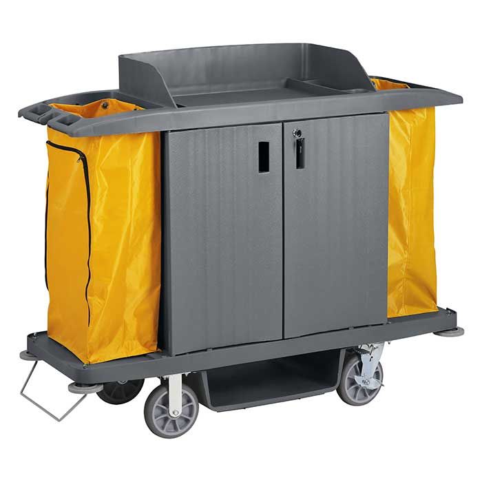 Plastic Housekeeping Cart, Deluxe Premium w/ Doors