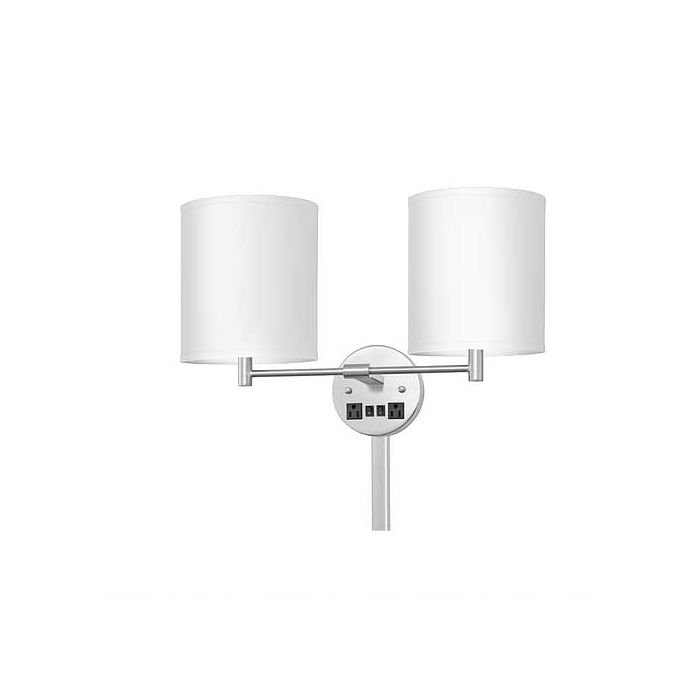 Switch: 2 Rockers on Wall Plate Connection Type: Plug-in Socket: 2 x Medium base Shade Item No: STX-150WS-SH Shade Material: Pure white linen Shade Style: Straight Round Shade Dimensions: 8" dia. X 9"H Case Pack: 4 Notes:
