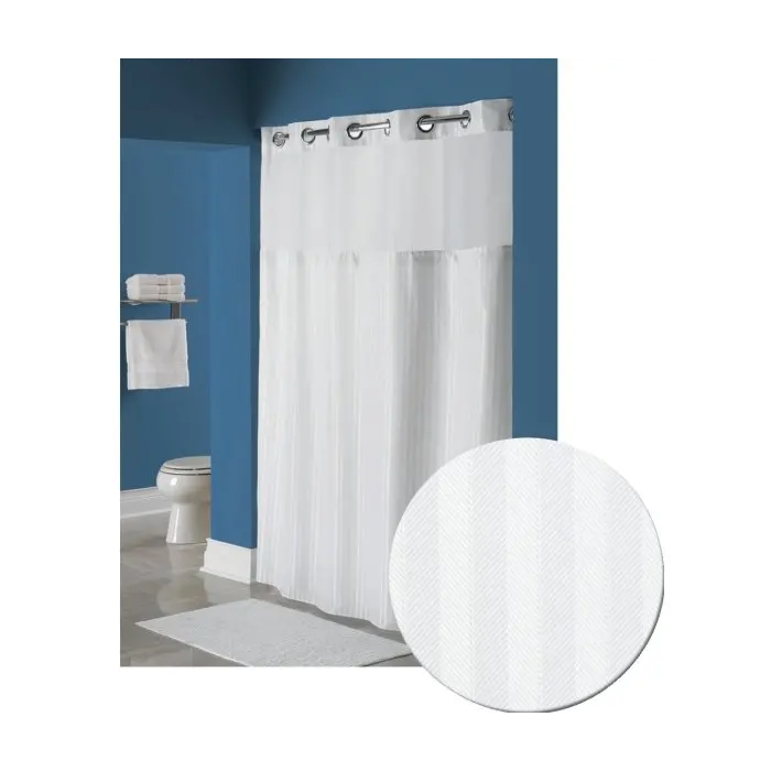 Wyndham Green, Shower Curtain, Double H, Herringbone, 71x77, w/ Liner